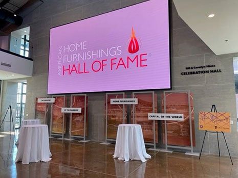 Our own Bill and Carolyn Hinks were among a distinguished group of industry leaders and other dignitaries at the ribbon cutting for the American Home Furnishings Hall of Fame on April 21, 2023.
